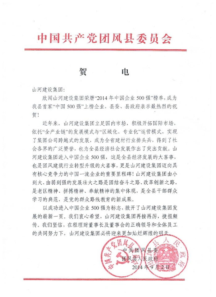 中國共產(chǎn)黨團(tuán)風(fēng)縣委員會(huì)賀電